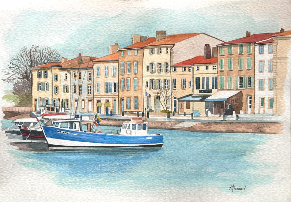 Port de Saint-Martin Taille : 51 x 35,5 cm Technique : Aquarelle Prix : 400 Acheter -